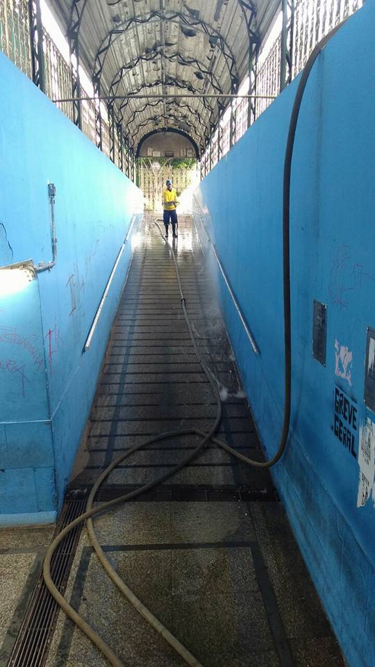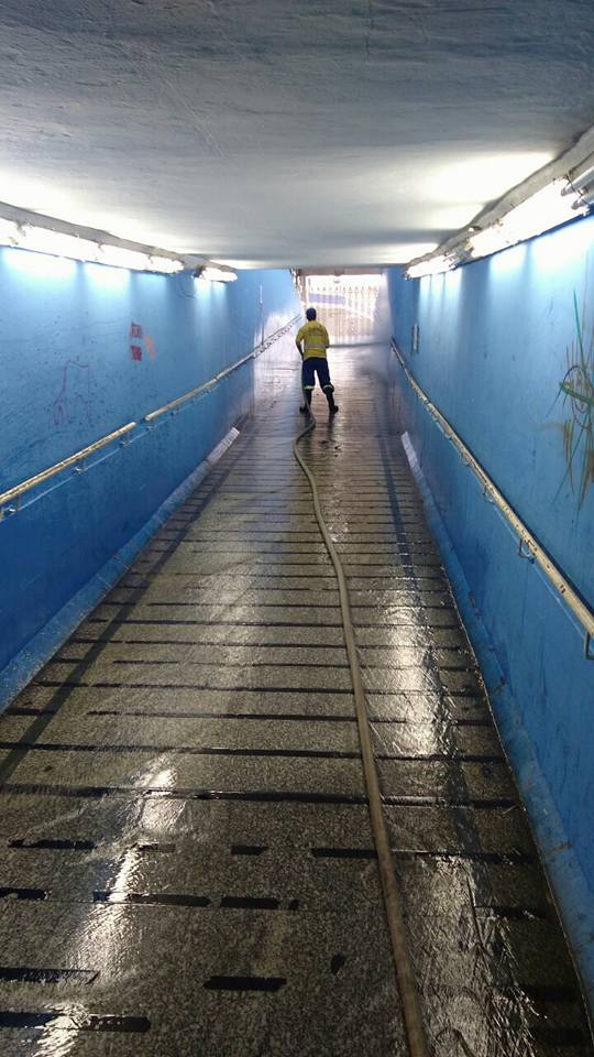 Hoje novamente a Secretaria de Serviços Urbanos da Prefeitura de Poá, mais uma vez limpou a passagem subterrânea Antônio Mandarano sob a via férrea.
