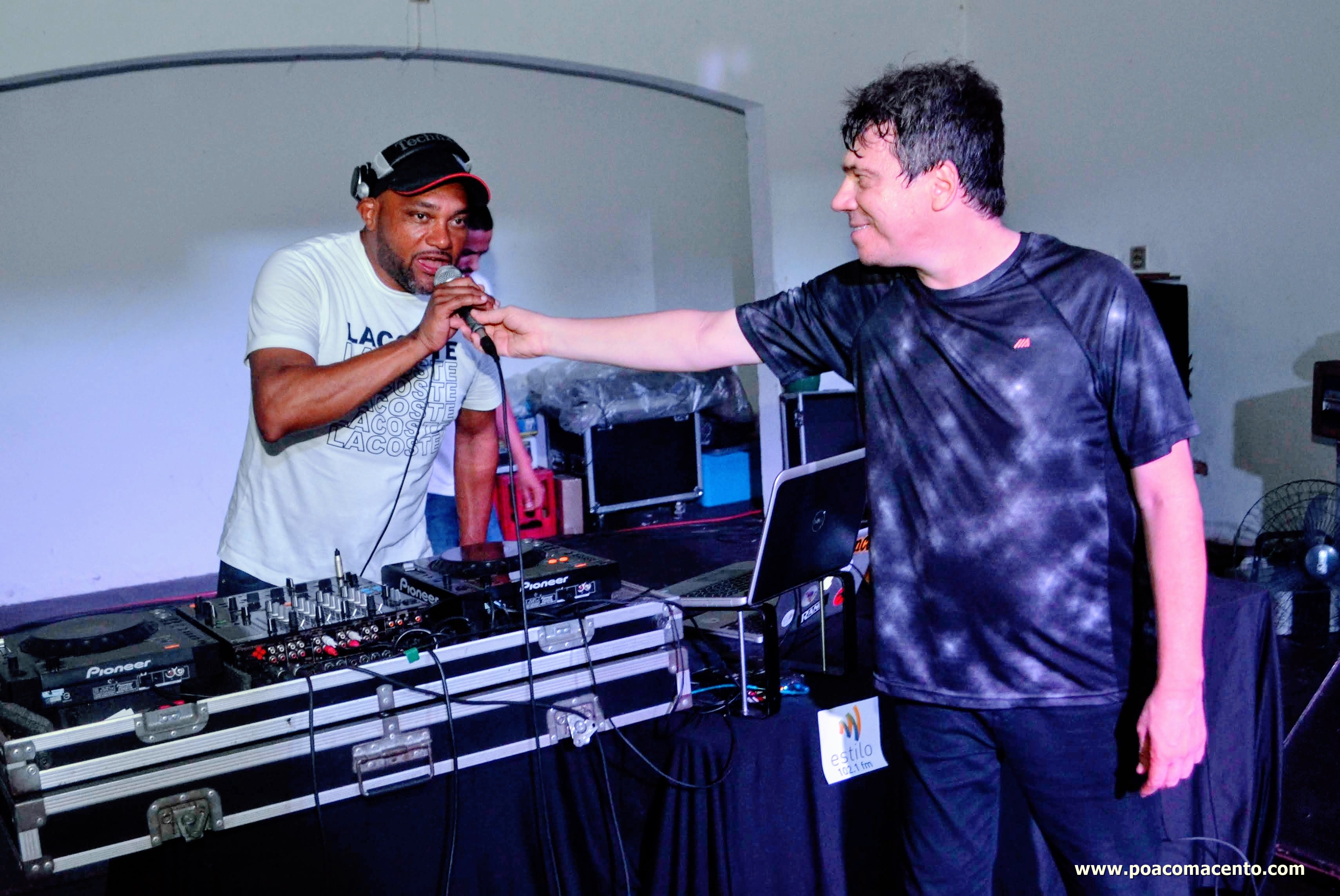 Carlinhos Oxydance agradecendo ao DJ Márcio Lima por ter tocado junto na festa do XI Paulista