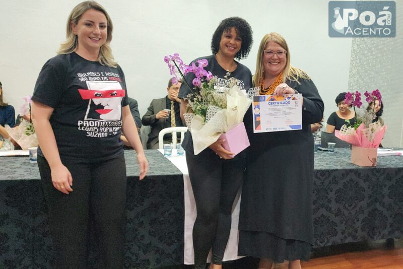 A coordenadora de Poá Andrineia Barbosa Gomes, que recebeu menção honrosa pela sua dedicação ao núcleo de Poá, em sua fala durante o evento, parabenizou a primeira dama de Suzano Larissa Ashiuchi, como a coordenadora Sandra Nogueira, como também aos professores, a prefeita Marcia Bin e ao portal de notícias POÁ COM ACENTO em apoio e divulgação da causa, Andrineia destacou em sua fala a participação da prefeita Marcia pela disposição e coragem em participar do curso. “Este é um marco para a PLP no Brasil. Agora temos uma prefeita eleita que também é promotora. Parabéns pela coragem e disposição em encarar mais este desafio”, disse.