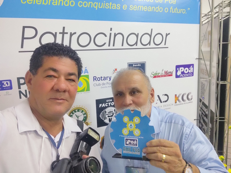 - Adilson Santos repórter e editor do portal de notícias POÁ COM ACENTO, recebendo de Francisco Quintino sua lembrança do evento