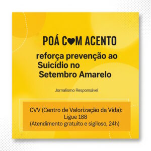 Poá, SP – Durante o Setembro Amarelo, campanha nacional de conscientização sobre a prevenção do suicídio, o POÁ COM ACENTO reforça seu compromisso com a saúde mental da população, adotando uma cobertura jornalística responsável e ética.