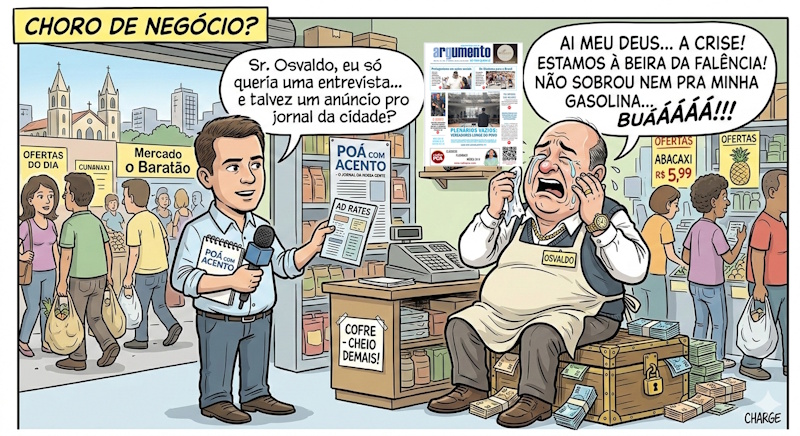 Há uma espécie exótica que habita as cadeiras de couro das gerências e os balcões reluzentes do comércio local: o Pobretão de Fachada. Você já deve ter cruzado com um. Ele é aquele sujeito que, ao ver um repórter se aproximar, ou agente publicitário com uma proposta seja ela, publieditorial ou ações de marketing com uma mídia jornalística, sofre uma metamorfose instantânea. Em segundos, o empresário próspero se transforma no personagem principal de uma tragédia grega financeira.
